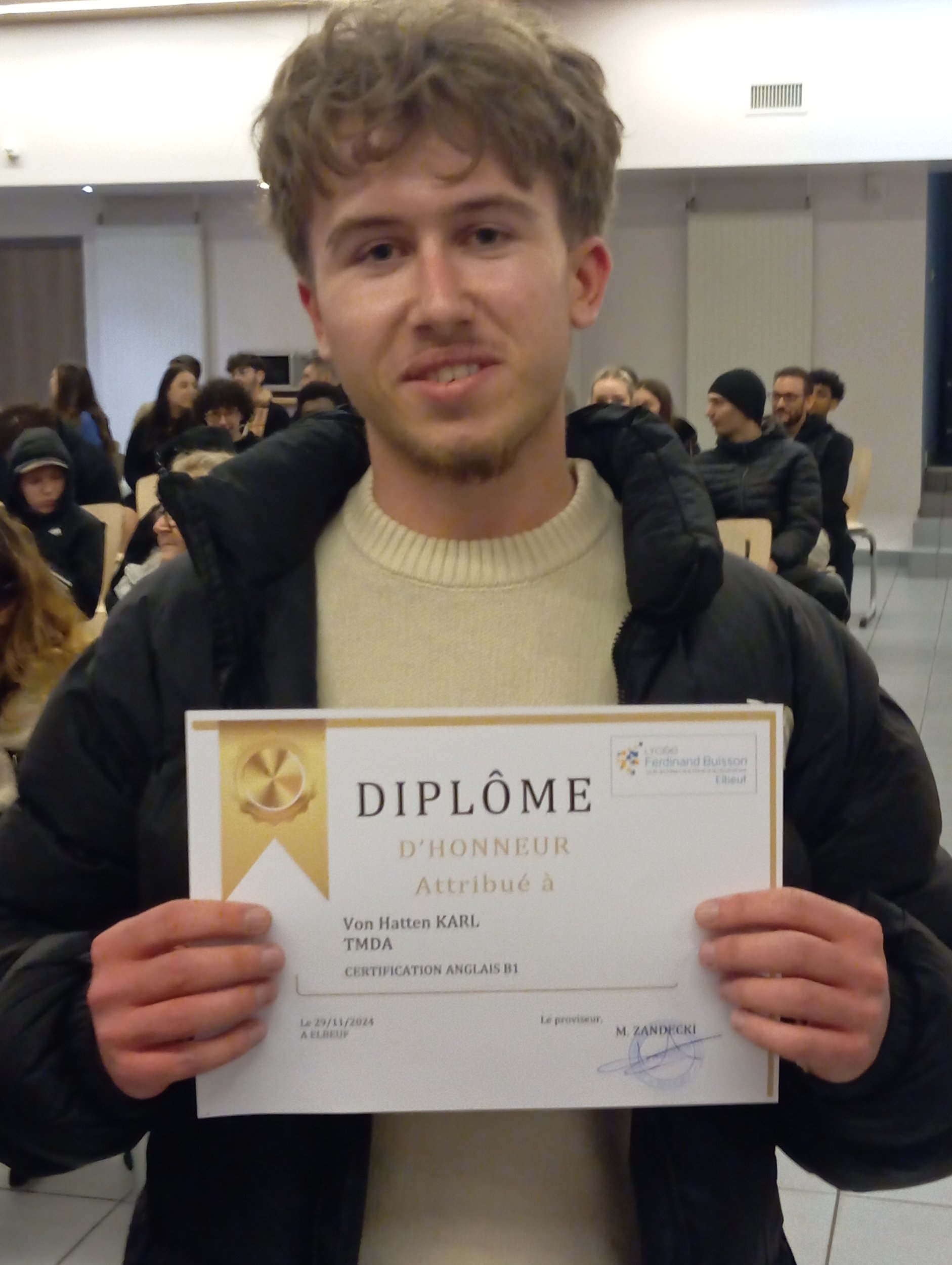Il a également remis quelques diplômes d’honneur pour les élèves méritant : Mention très bien (dont 2 avec félicitation du jury !), le meilleur résultat PIX 2024 mais aussi les élèves qui se sont investis pour le lycée au CVL.